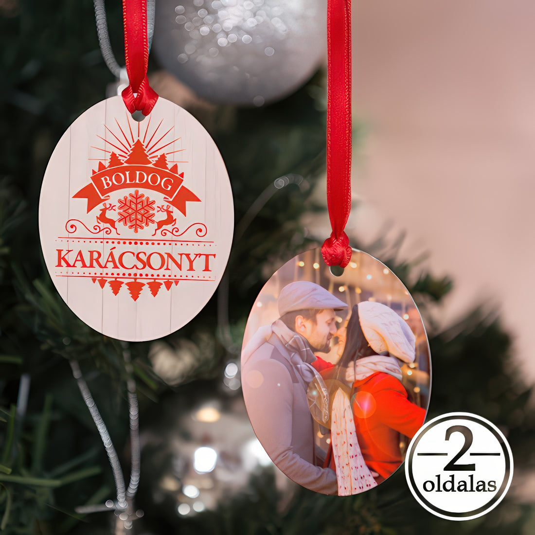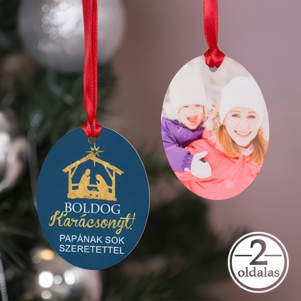 Kétoldalas ovális fényképes karácsonyfadísz – egyedi ajándék az ünnepekre Tegye különlegessé karácsonyfáját ezzel az elegáns,...
