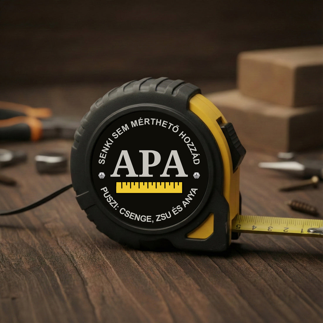 📏 Egyedi „APA” feliratos mérőszalag – személyes, praktikus és szívhez szóló ajándék Lepd meg apukádat...
