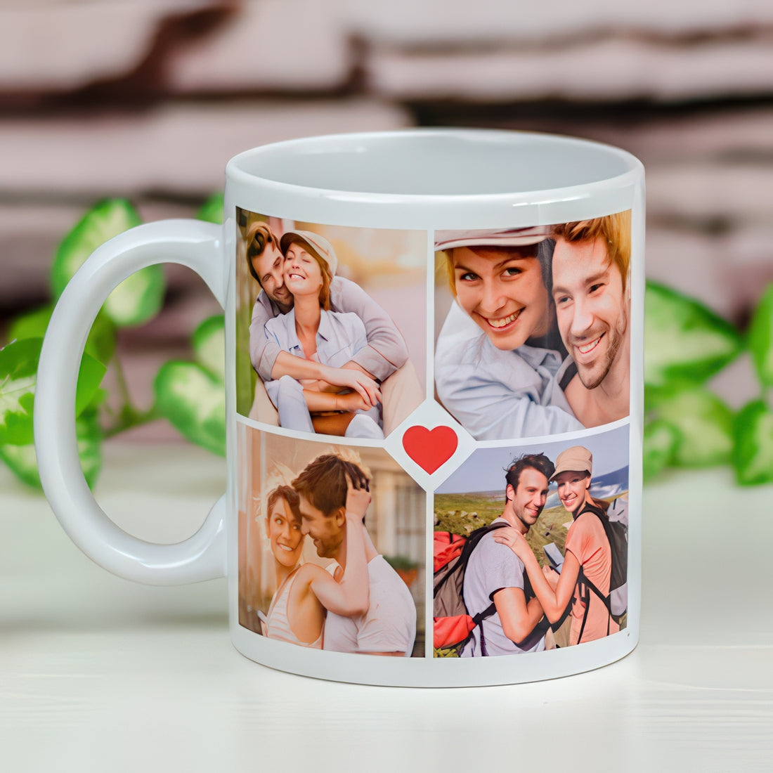 ❤️ Fényképes bögre 4 képpel – szívecskés elrendezéssel Tegye különlegessé a reggeleket egy igazán személyes...