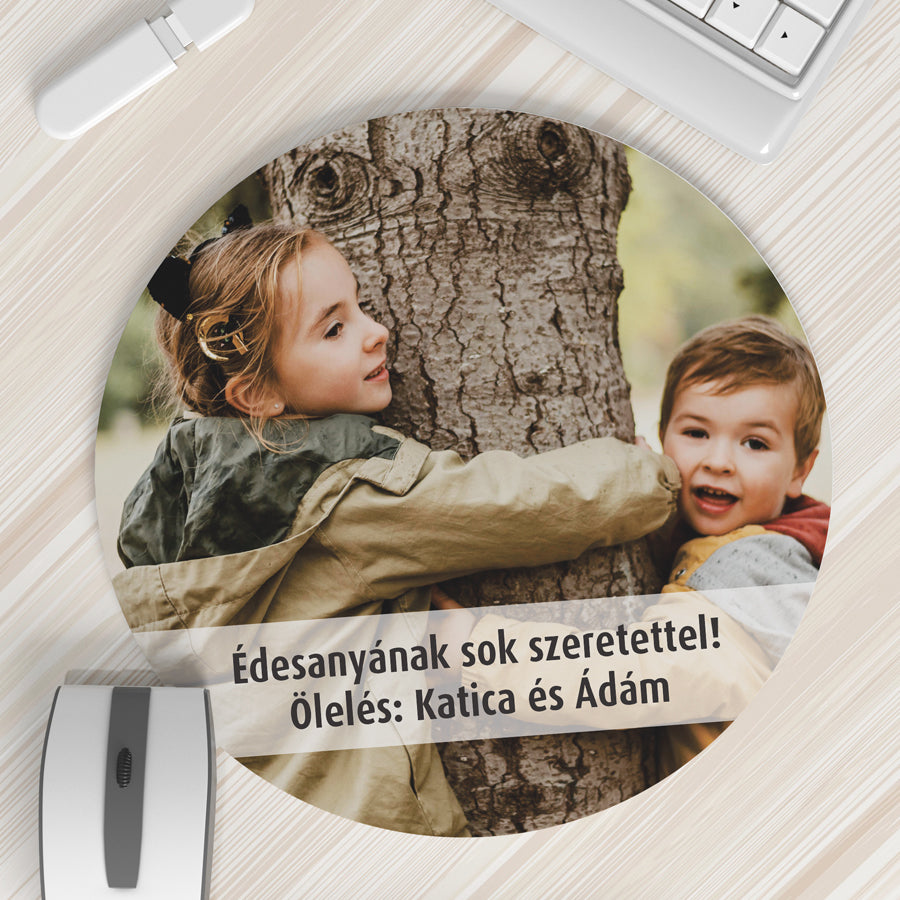 🖱️ Kör alakú fényképes egérpad egyedi felirattal – szívből jövő ajándék Legyen szó anyák napjáról,...