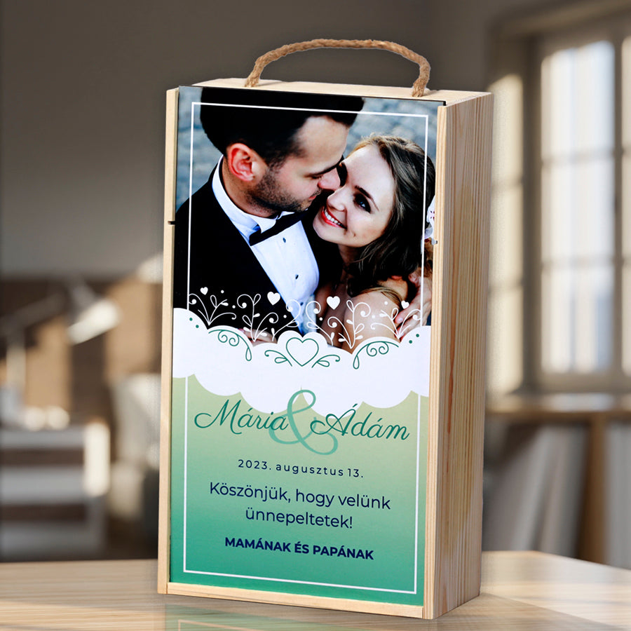 💍 Egyedi fényképes fa borosdoboz – tökéletes ajándék esküvőre vagy évfordulóra Keresed a különleges, mégis...