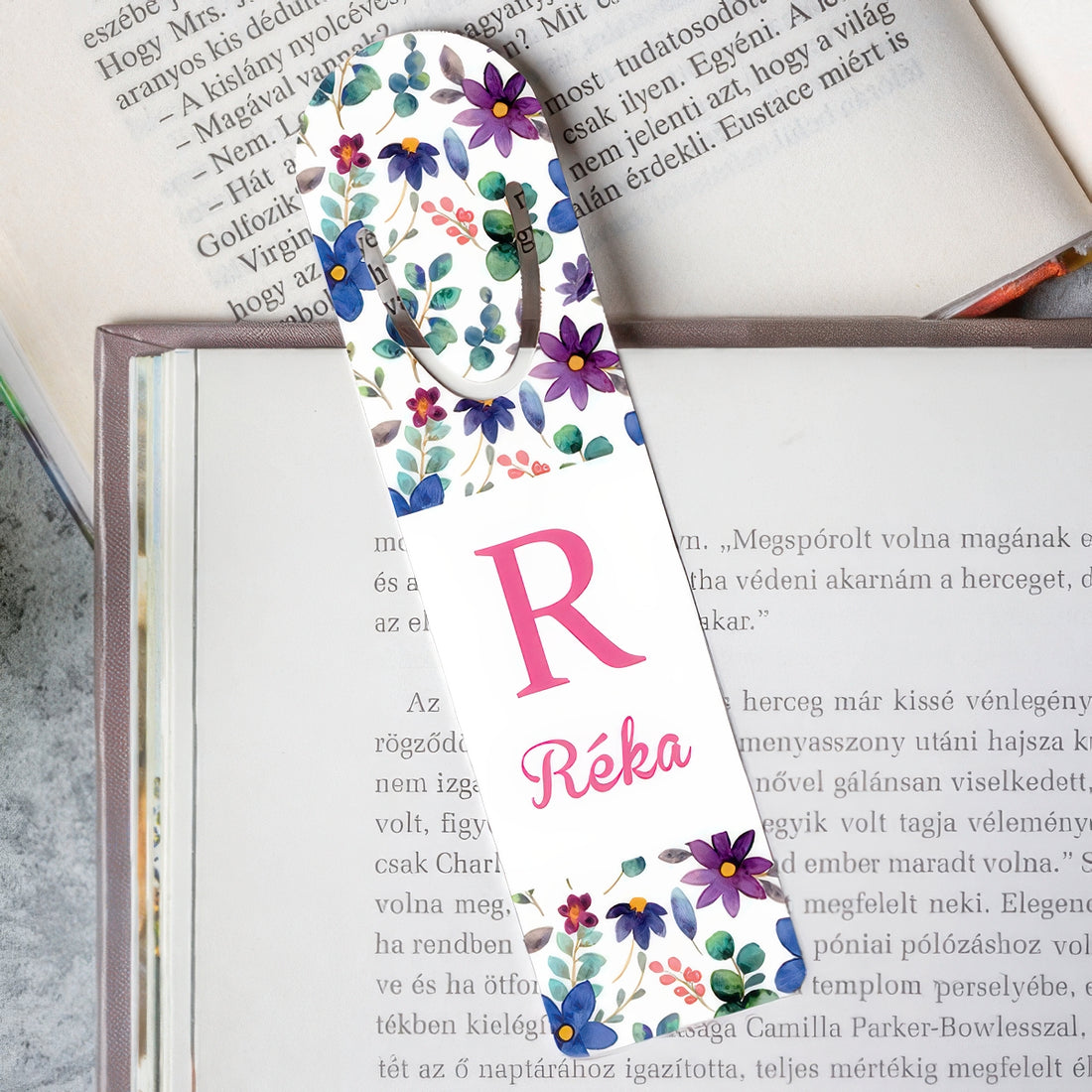 🌸 Egyedi fém könyvjelző névvel és kezdőbetűvel – virágmintás kivitel Tedd személyessé az olvasás élményét...