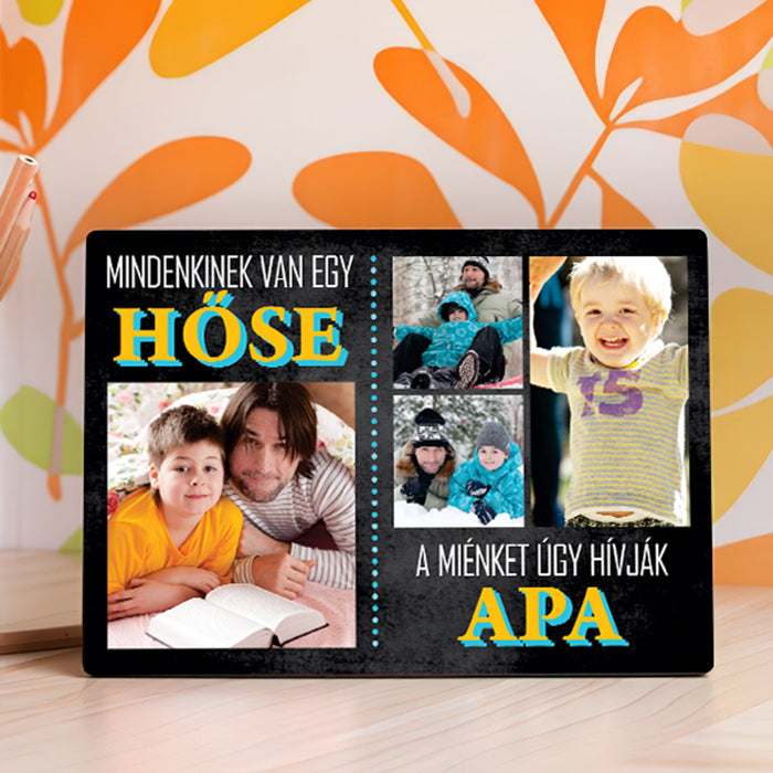 💙 Egyedi fényképes fotópanel – Apa, a mi hősünk Mindenkinek van egy hőse – a...
