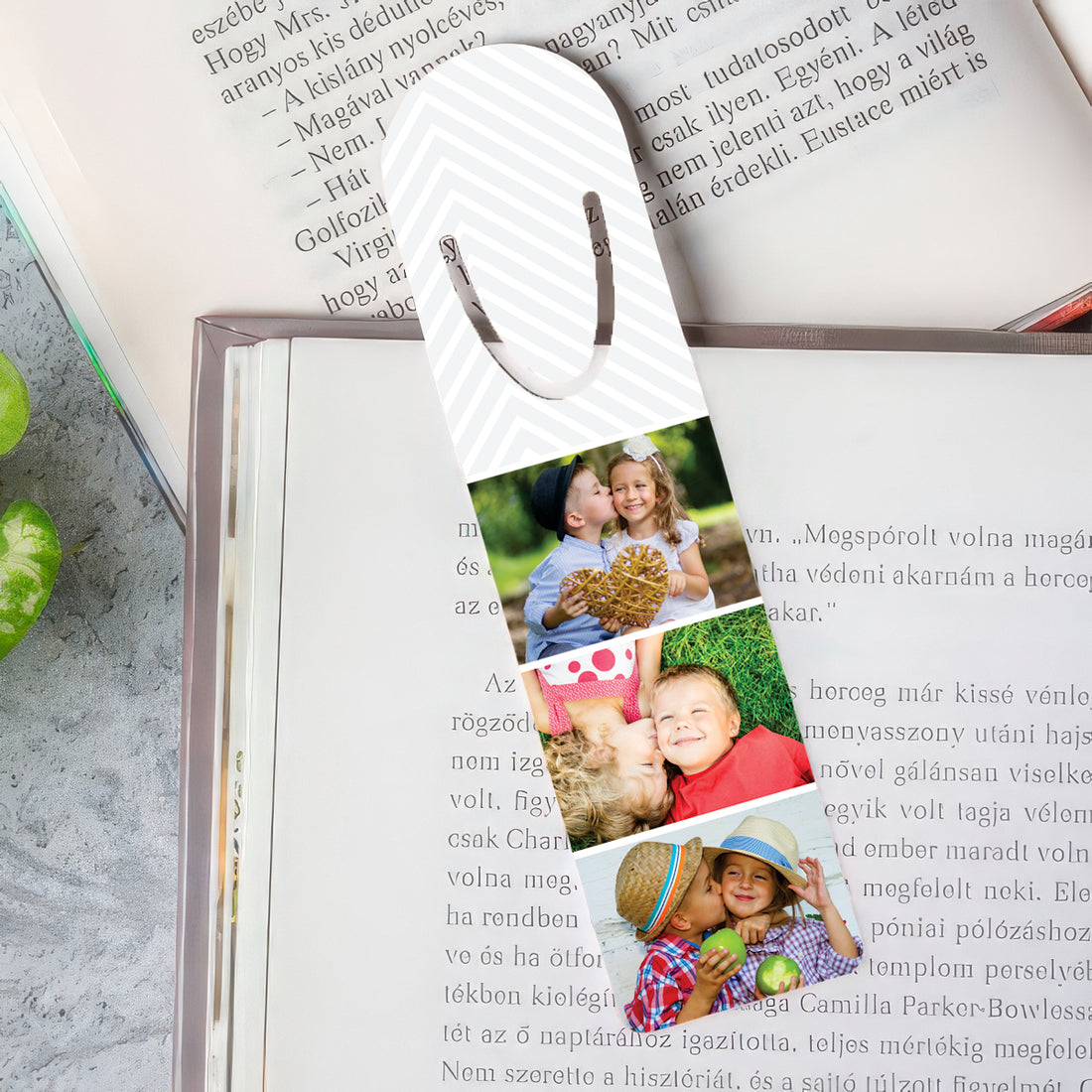 📚 Egyedi fém könyvjelző 3 fényképpel – személyes ajándék az olvasás szerelmeseinek Legyen az olvasás...