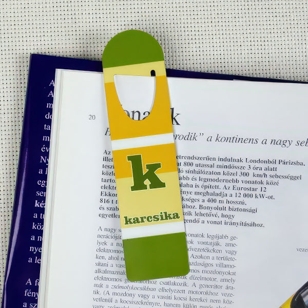 📗 Egyedi névre szóló fém könyvjelző – zöld csíkos design Tökéletes ajándék minden könyvszeretőnek! Ez...