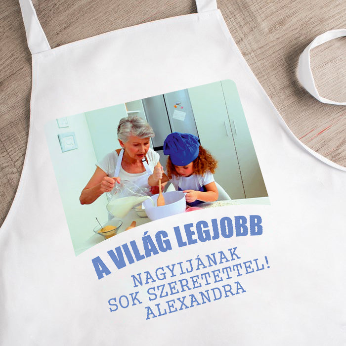 Egyedi fényképes kötény – „A világ legjobb…” felirattal Legyen szó a világ legjobb anyukájáról, nagymamájáról...