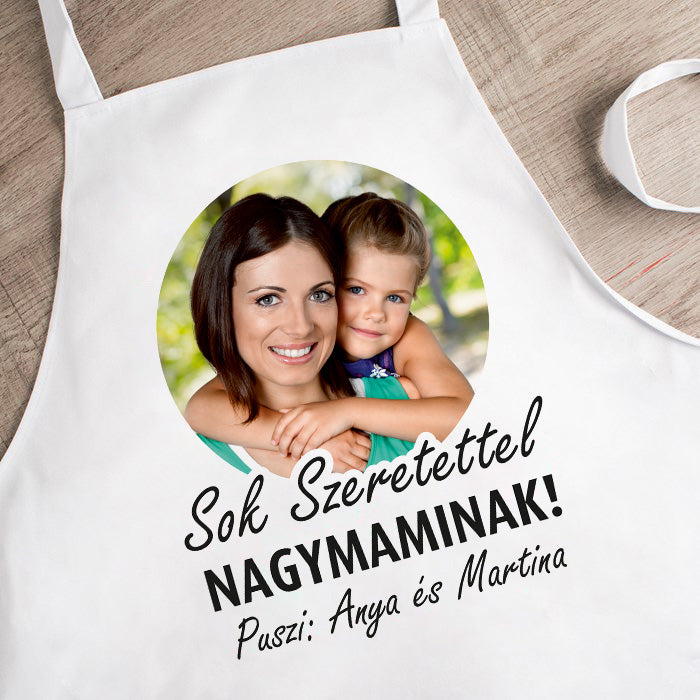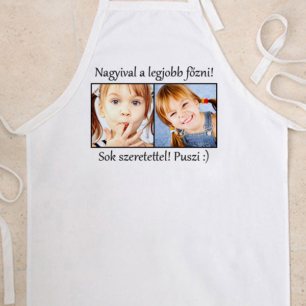 Egyedi fényképes kötény – 2 fotóval és személyes felirattal Ez a bájos, egyedi kötény garantáltan...