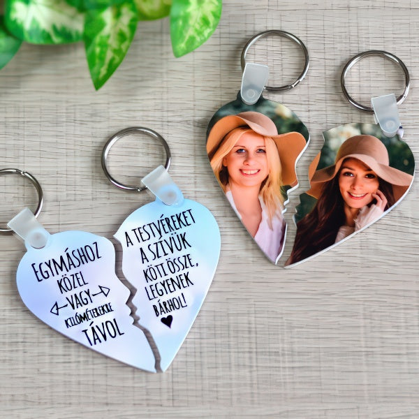 ❤️ Egyedi páros szív alakú fényképes kulcstartó – testvéreknek Tökéletes ajándék, ha valakit igazán közel...