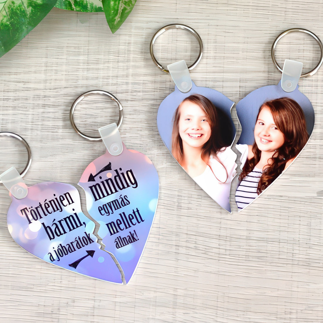 💞 Fényképes szív alakú páros kulcstartó – legjobb barátoknak Egy ajándék, ami összeköt, még akkor...