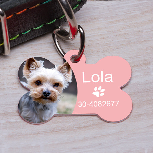 🐾 Egyedi fényképes fém kutyabiléta – rózsaszín csont alakú kivitel Kedvence biztonsága és stílusa most...