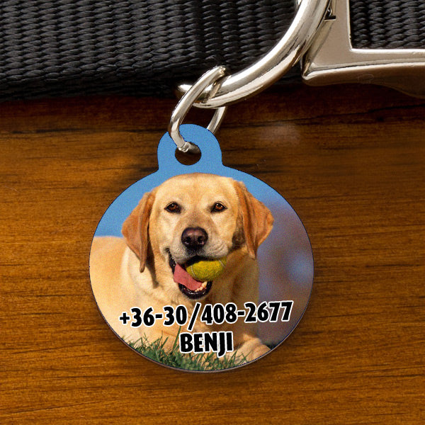 🐾 Kör alakú fényképes kutyabiléta – egyedi, személyre szabható Tegye különlegessé kedvence nyakörvét egy egyedi,...