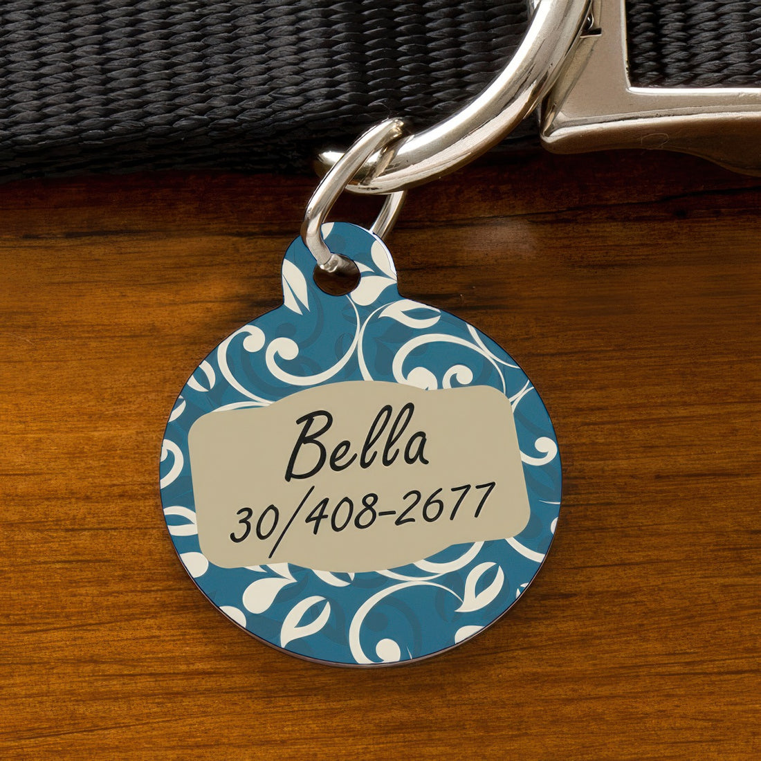 🐾 Kör alakú fém kutyabiléta – elegáns mintával, névvel és telefonszámmal Elegancia és biztonság egy...