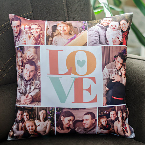 💕 Egyedi fényképes kispárna – LOVE kollázs 8 képpel Töltsd meg otthonod szeretettel – szó...