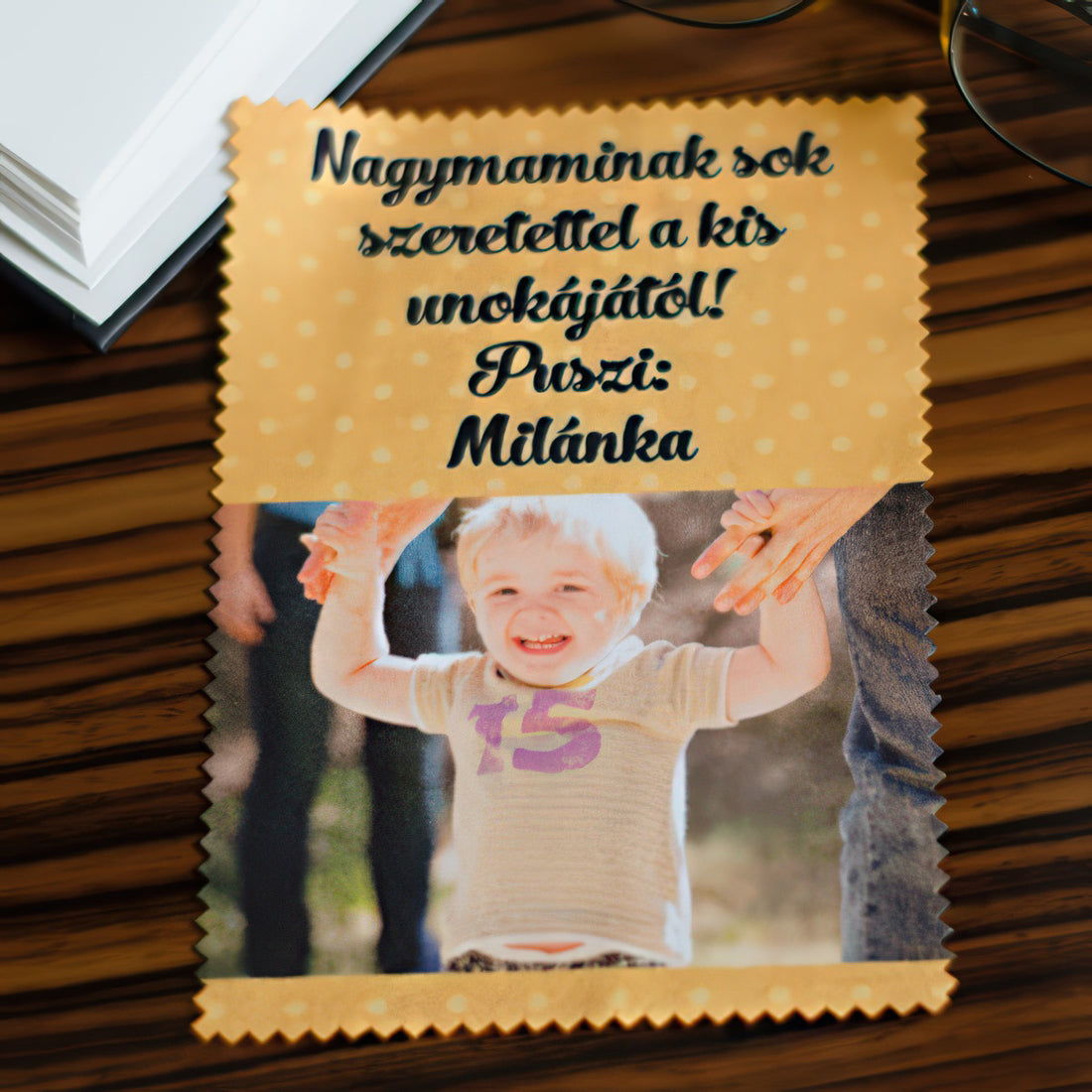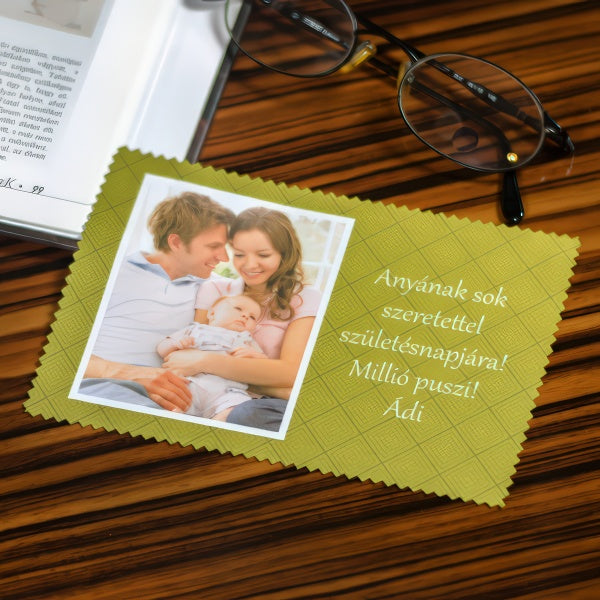 🎁 Egyedi fényképes és feliratos szemüvegtörlő kendő – személyes ajándék a mindennapokra Ajándék, ami nemcsak...