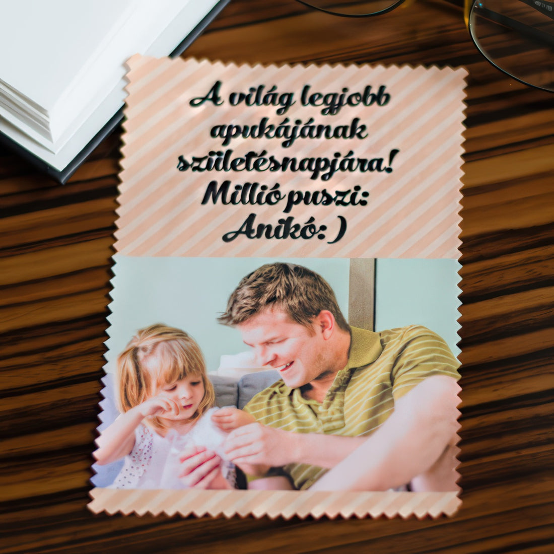 💚 Egyedi fényképes szemüvegtörlő kendő – kedves üzenettel és modern dizájnnal Tökéletes ajándék, ami egyszerre...