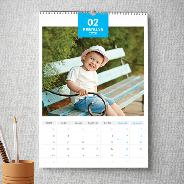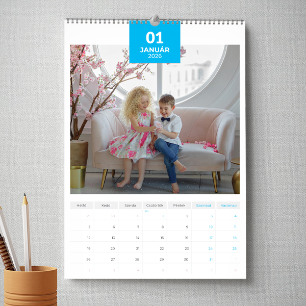 Válasszon 13 kedvenc fotót – minden hónaphoz egyet –, és mi elkészítjük a spirálozott, A4 méretű falinaptárt, amely nemcsak praktikus, hanem szívhez szóló ajándék is.