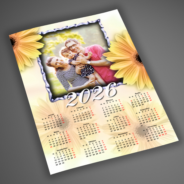 Egylapos fényképes napraforgós naptár, A4