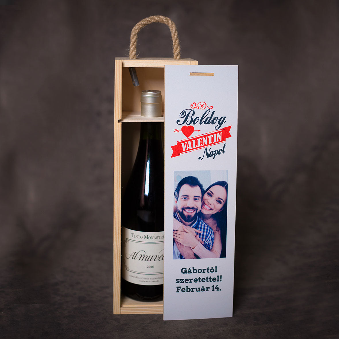 💝 Egyedi Valentin-napi fa borosüvegdoboz – romantikus ajándék bor mellé
