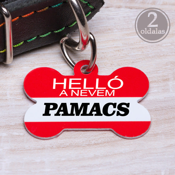 Ez a kétoldalas, piros csont alakú fém kutyabiléta nemcsak mutatós, de hasznos is. Az egyik oldalon a kutyus neve és a „Helló, a nevem” felirat olvasható, míg a másik oldalon a gazdi telefonszáma kap helyet – így, ha kedvence elkóborol, gyorsan visszajuthat Önhöz.