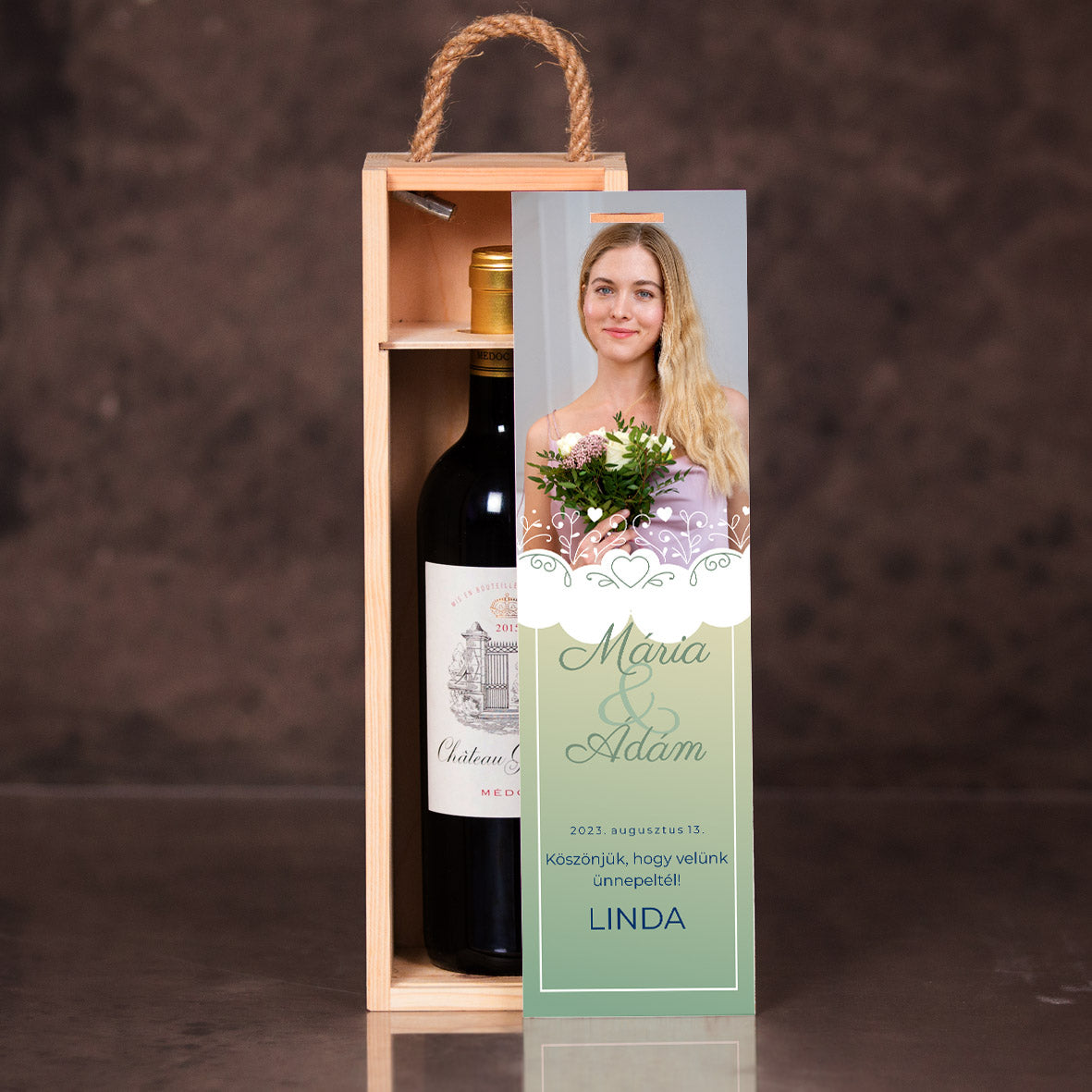 Személyes és elegáns ajándék, mellyel biztosan mosolyt csalhatsz az ifjú pár vagy szeretteid arcára. Tölts fel egy kedvenc közös fotót, adj hozzá egy rövid üzenetet, és mi elkészítjük az egyedi borosüvegdobozt, ami örök emlék marad.