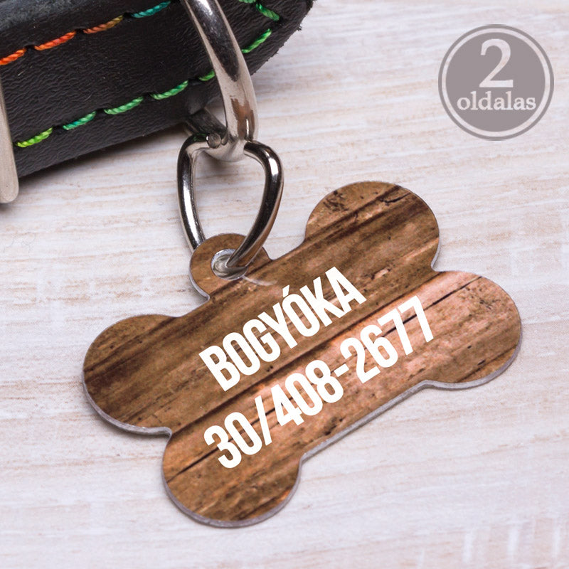 Ez a kétoldalas, csont alakú fém kutyabiléta egyik oldalán kedvence fotóját, a másikon pedig a nevét és a gazdi telefonszámát tartalmazza.