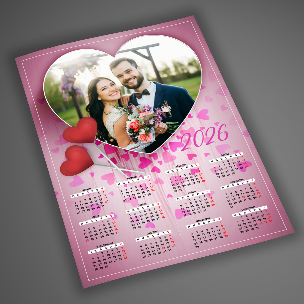 💖 Fényképes falinaptár 2026 – romantikus, szívecskés design