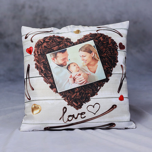 🍫 Egyedi fényképes kispárna – csokis szív motívummal