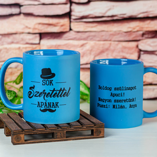 ☕ Egyedi matt kék bögre – Sok szeretettel Apának