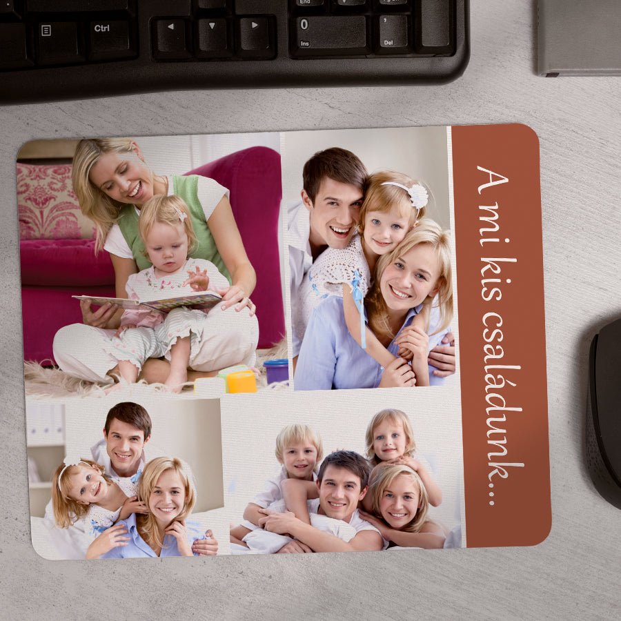 🖱️ Fényképes egérpad 4 képpel és személyes üzenettel – „A mi kis családunk”