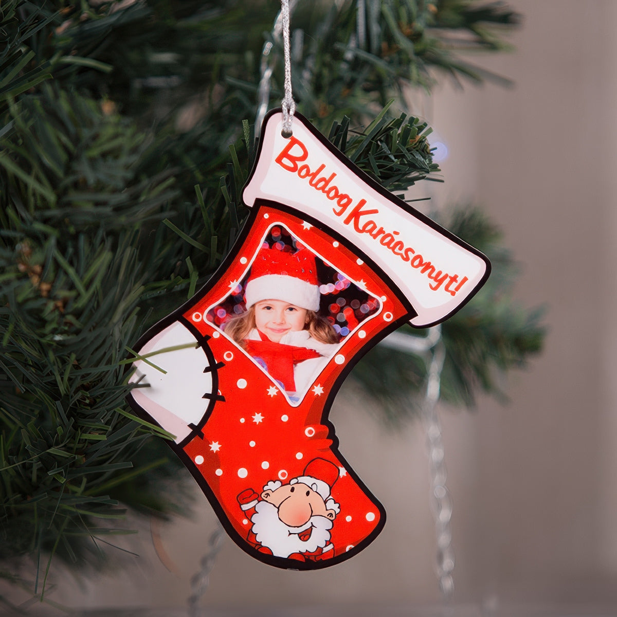 Unja a régi karácsonyfadíszeket? Dobja fel az ünnepi hangulatot ezzel a vidám, csizma alakú fényképes karácsonyfadísszel, amely a gyerekkori meséket idézi vissza!