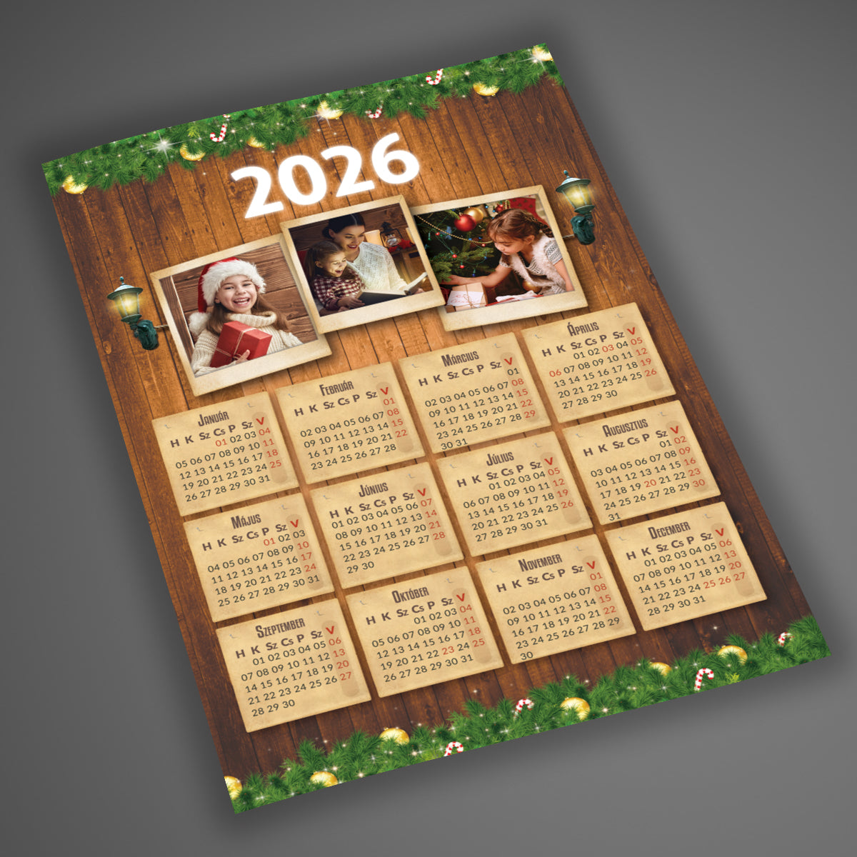 A naptár meleg, faborítású hátteret és ünnepi díszítést kapott, így otthonodban, irodában vagy ajándékként is remekül mutat. Tökéletes választás karácsonyra, újévre vagy bármilyen alkalomra, amikor személyes ajándékkal szeretnél örömet szerezni.