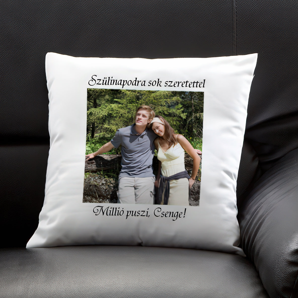 Egy ajándék, ami nemcsak puha és kényelmes, hanem tele van érzelemmel is! Ez az egyedi fényképes kispárna lehetőséget ad arra, hogy a fénykép fölé és alá egyedi üzenetet írj – legyen az kedves, romantikus vagy humoros.