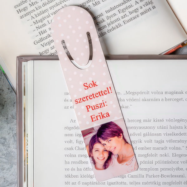 📖 Egyedi fényképes fém könyvjelző – személyes üzenettel