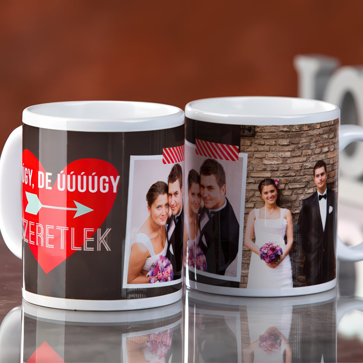Lepd meg szerelmedet egy igazán személyes ajándékkal! Ez a romantikus, szívecskés fényképes bögre két kedvenc közös fotótokat örökíti meg, és minden reggel emlékeztet arra, milyen különleges a kapcsolatotok. Tökéletes Valentin-napra, évfordulóra vagy csak úgy – mert szeretni minden nap lehet!