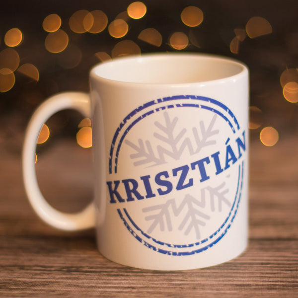☕ Egyedi hópihés karácsonyi bögre – névre szóló téli meglepetés