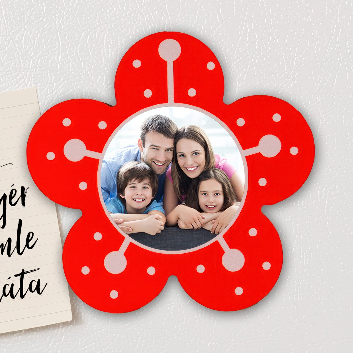 Ez a virág alakú fényképes hűtőmágnes nemcsak dekoráció, hanem egy személyes emlék, ami minden nap jókedvre derít.